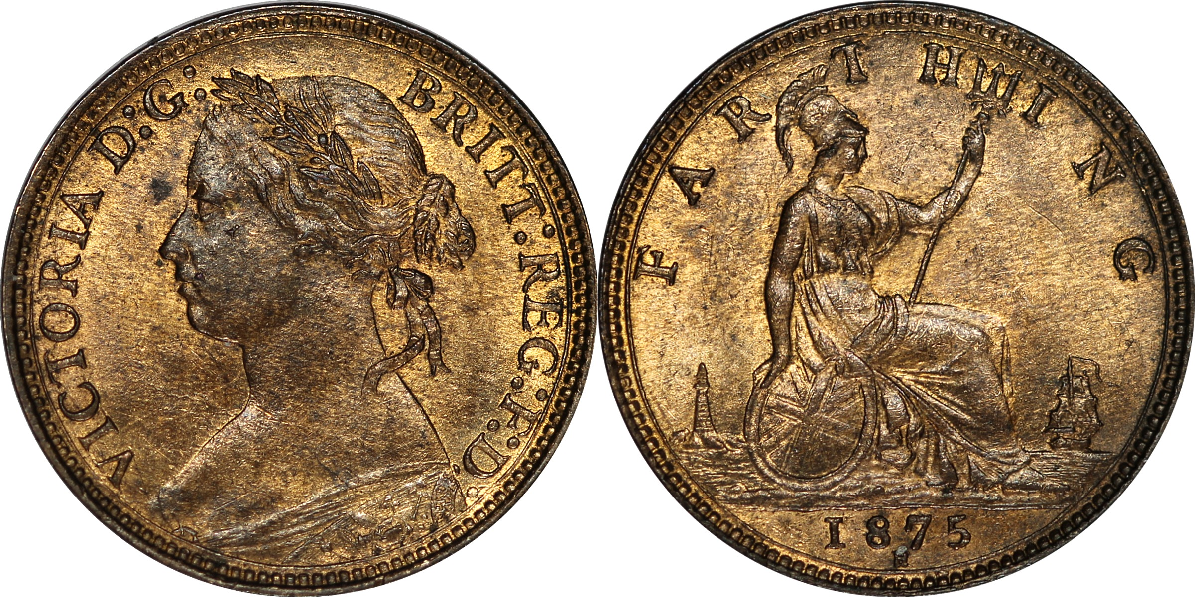1875 Farthing Heaton Mint