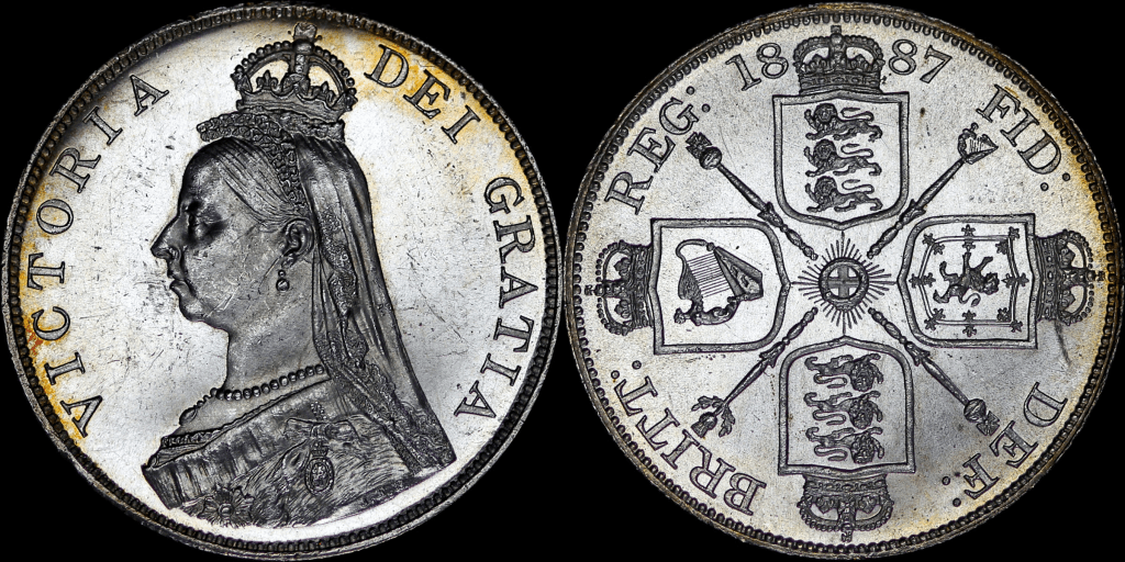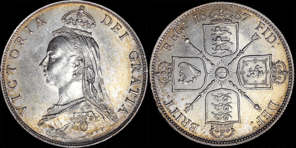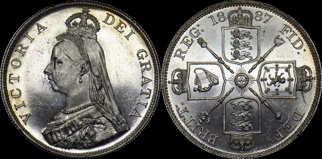 1887 Double Florin Roman I in Date Broken J in JEB
