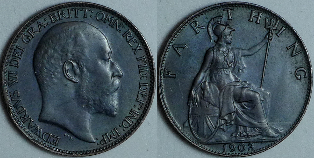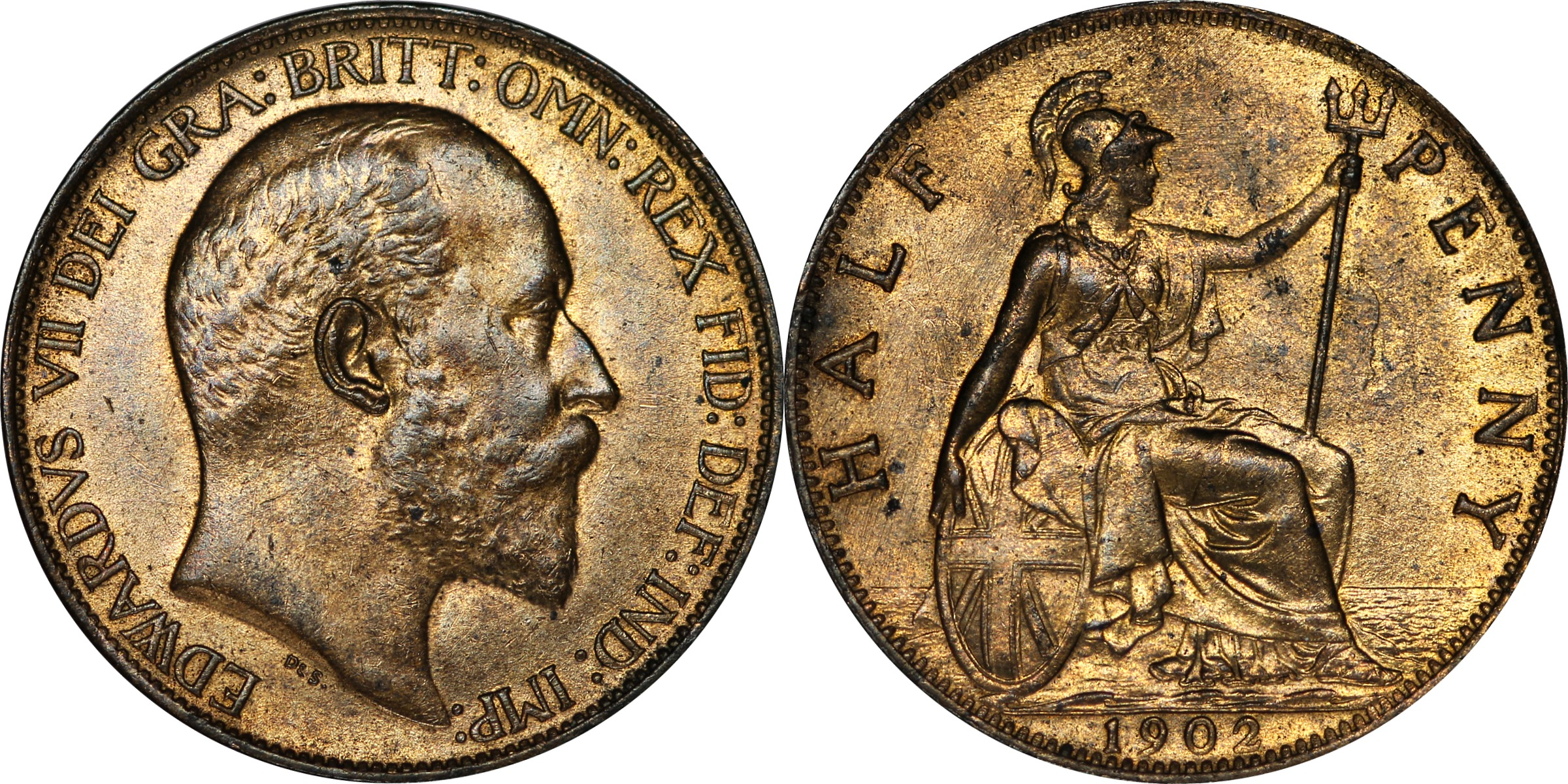 The finish of these coins was matte, completely different to the usual polished brilliance of earlier sets (and for that matter) later sets. The process to create the matte proofs was developed in the preceding decade in Belgium and was adopted by the Royal Mint to make the 1902 sets. Coin-collecting folklore says that the Royal Mint workers disliked the finish greatly and wiped the coins as they came out of the presses on their leather aprons to give them a more brilliant appearance.