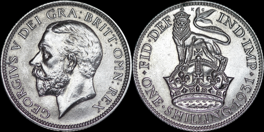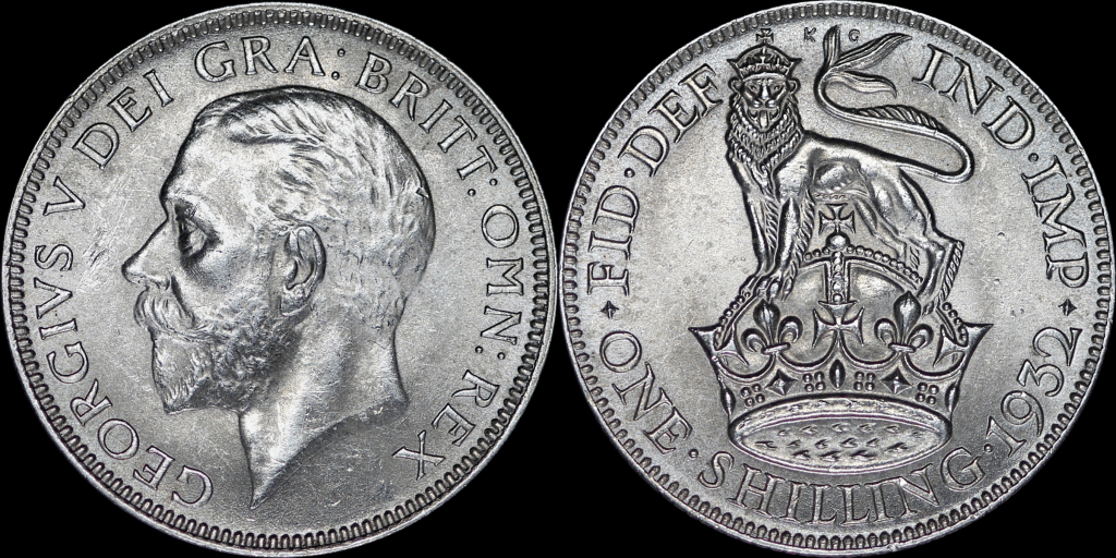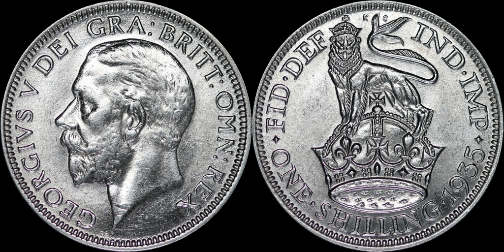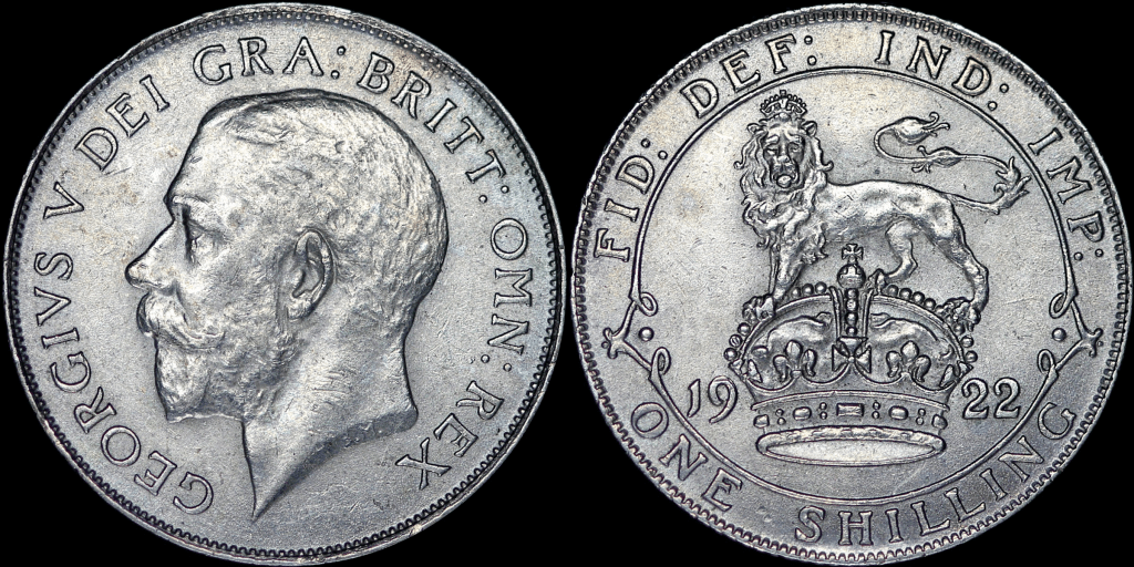 1921 Shilling Dies 5D (I of GEORGIUS to bead, low relief head)