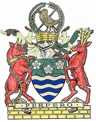 The bull of the ancient Cumberland family of Dacre is an historic emblem associated particularly with the old Border warfare, and the roebuck is traditional to the County. The supporters are shown standing on a masoned base representing Hadrian’s Wall.