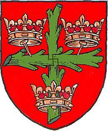 The arms were altered at the time of reformation so as not to appear idolatrous. The living cross was changed to two white ragged staves and the nails were removed. These arms were confirmed in 1558 and recorded in use in 1634. The town council reverted to the original arms in 1915.