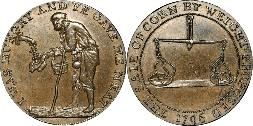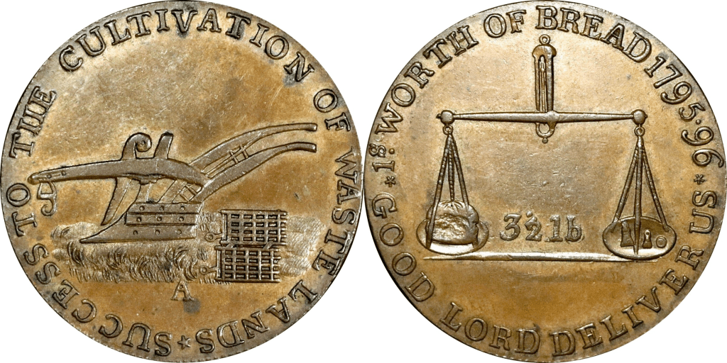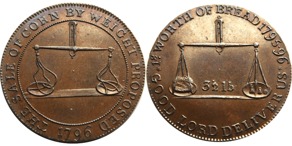 Reverse: Pair of scales, 3 1/2 lb, 1s WORTH OF BREAD 1795-96 * GOOD LORD DELIVER US *