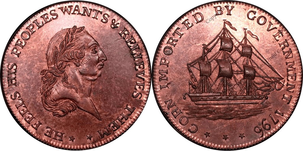 Reverse: A ship. CORN IMPORTED BY GOVERNMENT 1796 * * *