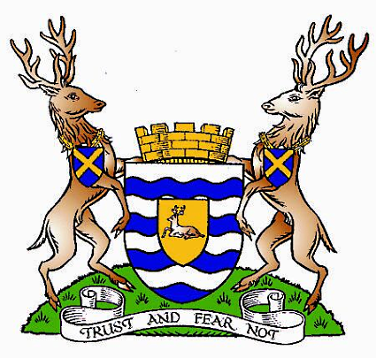 In the 1925 grant the hart supporters have a shield bearing the arms of Saint Albans. The motto was that of the Lord Lieutenant at the time of the grant.
