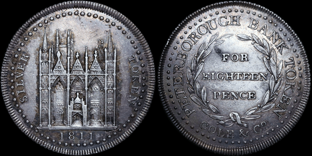 Reverse: FOR EIGHTEEN PENCE PETERBOROUGH BANK TOKEN COLE & Co.